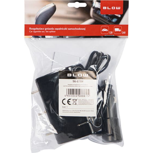 96-878# Cigarešu aizdedzinātāja sadalītājs 1x kontaktdakša/3x kontaktligzda+usb cs-34 ar slēdžiem + kabelis