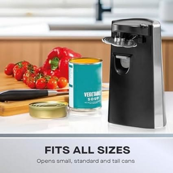 Daewoo elektriskais bundžu atvērējs SDA2313 daudzfunkcionāls nažu asinātājs pudeļu atvērējs, brīvroku 60 W, melns/sudrabots