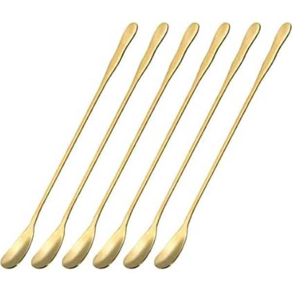 sourcing map Garas rokturu karotes, 6 gab. 20 cm saldējuma karotes, nerūsējošā tērauda kokteiļu maisīšanas karotes maisīšanai, dzeršanai, kafijai (zelta)