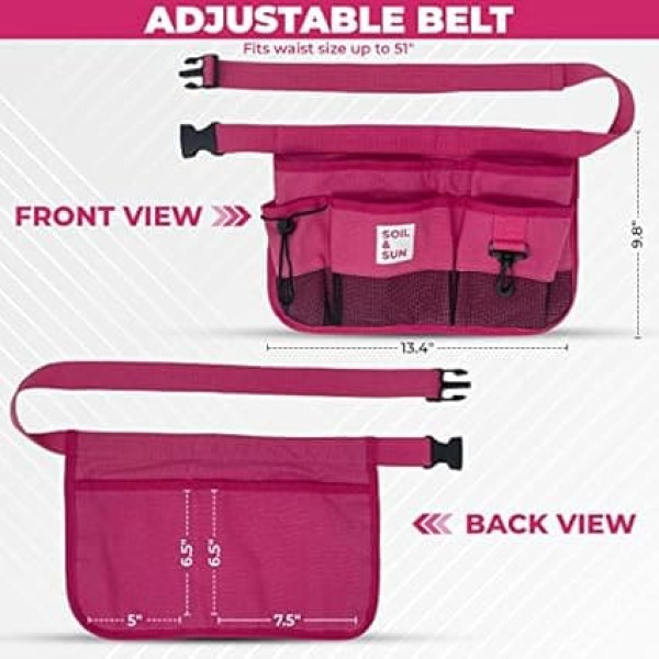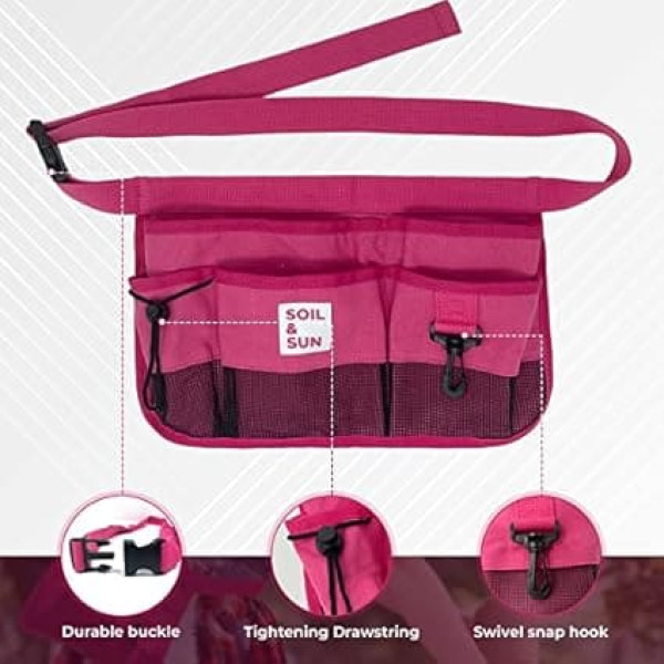 Soil & Sun Garten-Werkzeuggürtel für Frauen, Werkzeugschürze, Allzweckgürtel für Damen, Lehrer, Segeltuch-Taillenschürze mit Taschen, Gartenschürzen (Rosa)