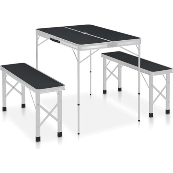 vidaXL saliekamais kempinga galds ar 2 soliem Dārza soliņu sēdvietu komplekts Somas galds Dārza galds Saliekamais piknika galds Alumīnija pelēks