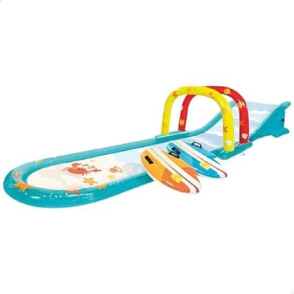 Intex 56167NP Piepūšamais ūdens slīdkalniņš ar smidzinātāju un diviem mini sērfošanas dēļiem Vinila daudzkrāsains, 561 x 137 x 99 cm