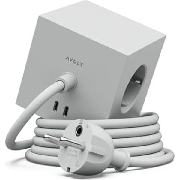 Avolt USB C strāvas adapteris, pasaulē pirmais dizaina strāvas adapteris, 3 kontaktligzdas un 2 USB pieslēgvietas, magnētiskais statīvs, piestiprināms gandrīz visur, pelēks, 1,8 m