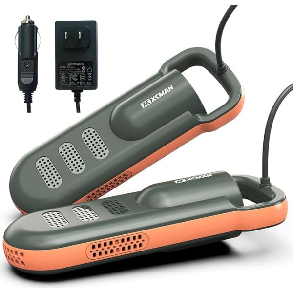 XCMAN Portatīvais apavu žāvētājs un zābaku žāvētājs, zābaku žāvētājs ziemas zābakiem, darba zābakiem, lietus zābakiem, slēpošanas zābakiem, ar integrētu ventilatoru un sildītāju, īpaši kluss 12V DC/AC pārveidotājs