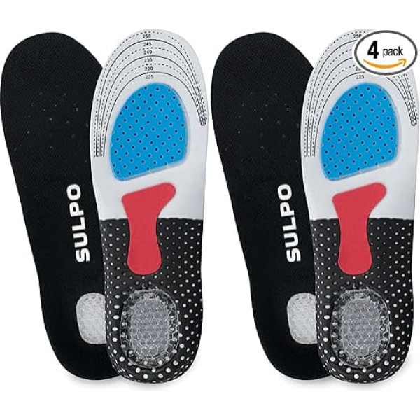 SULPO Pack of 2 Heel Spur Insoles, kurpju zolītes ar gēla papēdi, kurpju zolītes, darba apavi, sporta zolītes, kurpju zolītes, M, L, XL, melns
