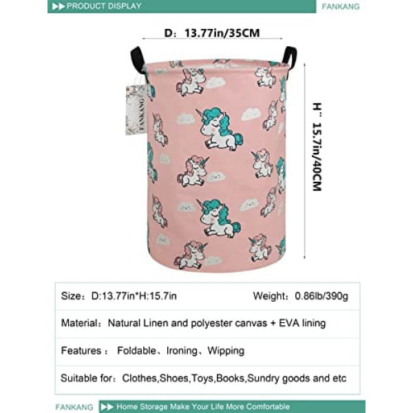 Fankang veļas grozs, liels uzglabāšanas grozs, audekls, salokāms, ūdensnecaurlaidīgs PE pārklājums, bērnistabai, bērnu istabai, rotaļlietu istabai, mājai (Mākonis vienradzis)