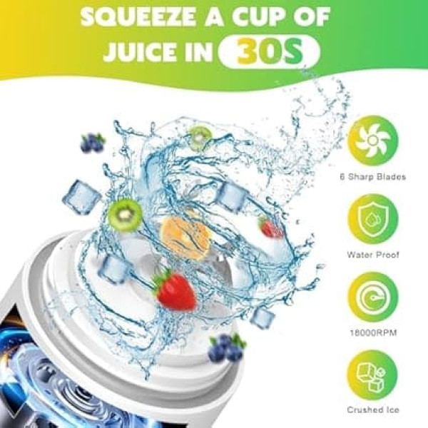 Pārnēsājams blenderis Personīgā sulu spiede ar izolētu uzmavu kokteiļiem un smūtijiem - 20oz mini blendera kauss ar 6 asmeņiem, ceļojuma vāks, USB uzlādējams - neliels blenderis virtuvei, ceļošanai, birojam