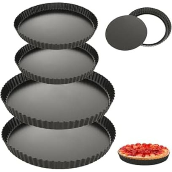 4 Pack Loose Base Quiche Pans 20cm 28cm Fluted Cake Pans Non-Stick Loose Base Quiche Pan Oglekļa tērauda Loose Bottom Quiche Pan cepšanai Black