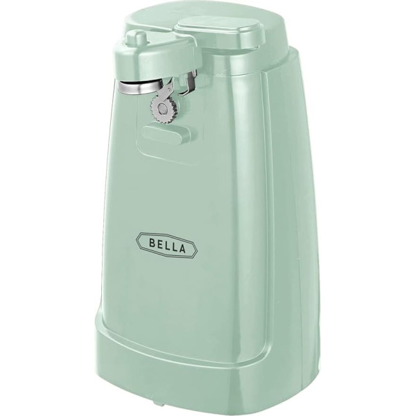 BELLA elektriskais skārdeņu un nažu asinātājs, daudzfunkcionāls burku un pudeļu atvērējs ar noņemamu griešanas sviru un kabeļa uzglabāšanas vietu, nerūsējošā tērauda asmens, salvijas zaļš