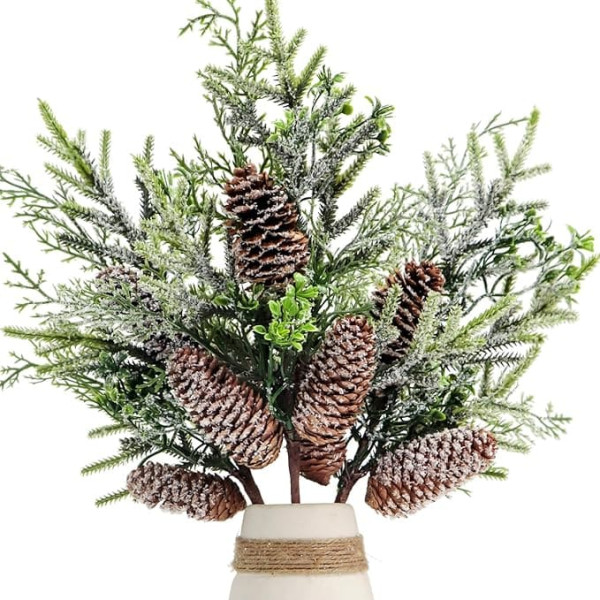 3 gabali Sniegotas priedes zaru kociņi ar priežu čiekuriem, 39 cm, Ziemassvētku zaļš, priežu čiekuri, kātiņš, matēta mākslīgā Ziemassvētku eglīte, priežu lapas, sniegotas mākslīgās priežu adatas