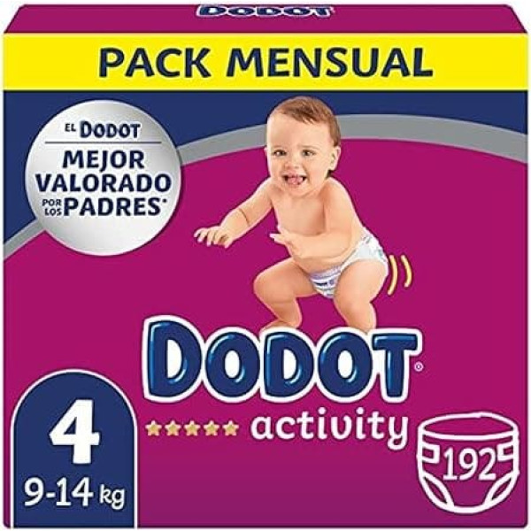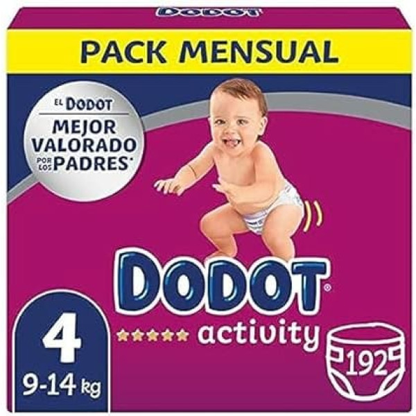 Dodot Activity bērnu autiņbiksītes 4. izmērs (9-14 kg), 192 autiņbiksītes ar stingrāku piegulošo daļu