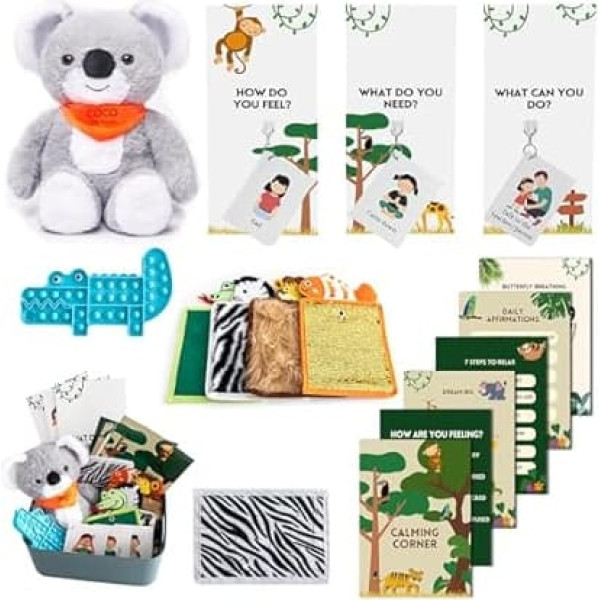 ODOXIA Nomierinošs stūrītis | Ideāli piemērots klasei | Nomierinošs stūrītis ar priekšmetiem bērniem | Nomierinoša stūra komplekts ar plakātiem, risinājuma sienu, sensorām rotaļlietām, fidžeta rīkiem