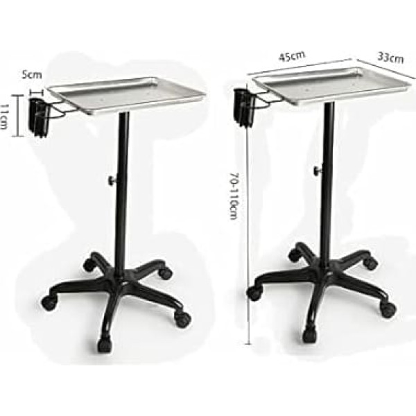 Frizieru ratiņi, frizieru ratiņi, frizieru darba ratiņi ar alumīnija paliktni, darba ratiņi, salonu ratiņi, frizieru ratiņi, regulējams augstums 70-110 cm (sudraba krāsā)