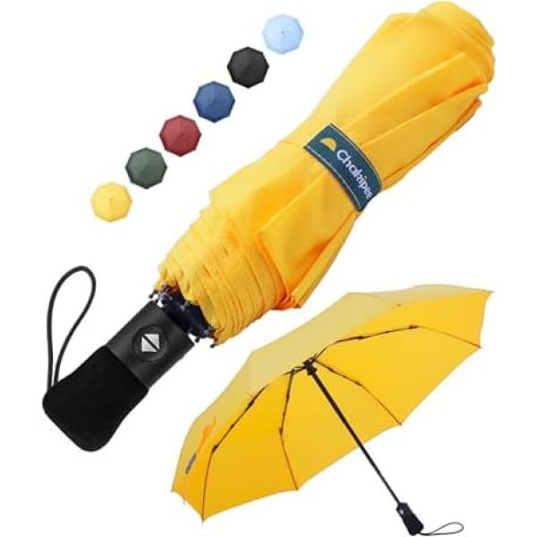 Chakipee Groß Sturmfest Kompakter Reise Regenschirm - Automatik Taschenschirm für Herren und Damen, 8 Rippen Schirm Tragbarer 210T-Stoff 97 cm Spannweite