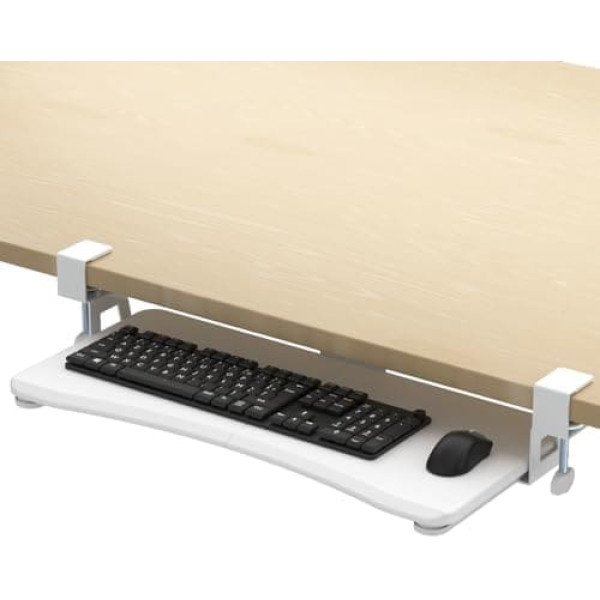 ‎Suptek suptek DSF1 tastatūras paliktnis, izvelkams tastatūras statīvs zem rakstāmgalda ar izturīgu C skavu, 650 x 300 mm, izvelkams platformas datora tastatūras paliktnis rakstīšanai, balts