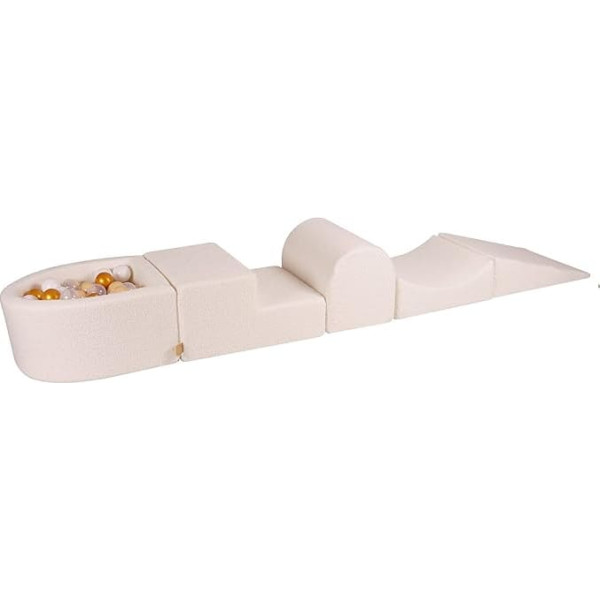 MEOWBABY Putuplasta klucīši bērniem - mīksti celtniecības klucīši XXL - spēļu laukums ar mazu bumbiņu bedrīti un 100 bumbiņām - iekštelpu motorikas rotaļlieta zīdaiņiem un maziem bērniem, Boucle, balta krāsa