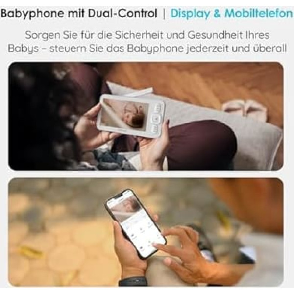 ieGeek Baby Monitor ar kameru 1080P, 5 collu WiFi video bērnu monitora PTZ 360° ar lietotni, 4x tālummaiņa, zonas signalizācija, kustības / trokšņa noteikšana, temperatūras un mitruma noteikšana, barošanas atgādinājums