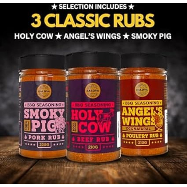 Dāvanu komplekts gaļas cienītājiem - "Holy Cow", "Angel's Wings", "Smoky Pig", "Sweet Texas", "Steak King" un "Adam's Ribs BBQ Rubs" | 6 iepakojumi | 100% dabīgi | Garšvielu dāvana gardēžiem