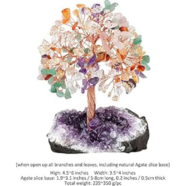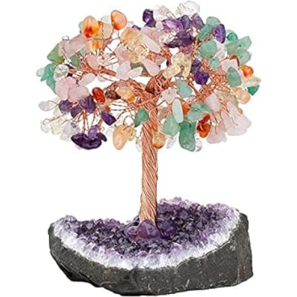 mookaitedecor Dabiskais 7 čakru kristāla koks ar ametista klastera kristāla bāzi Naudas koka skaitļi Feng Shui galda dekorēšana Meditācijas galda telpu dekori