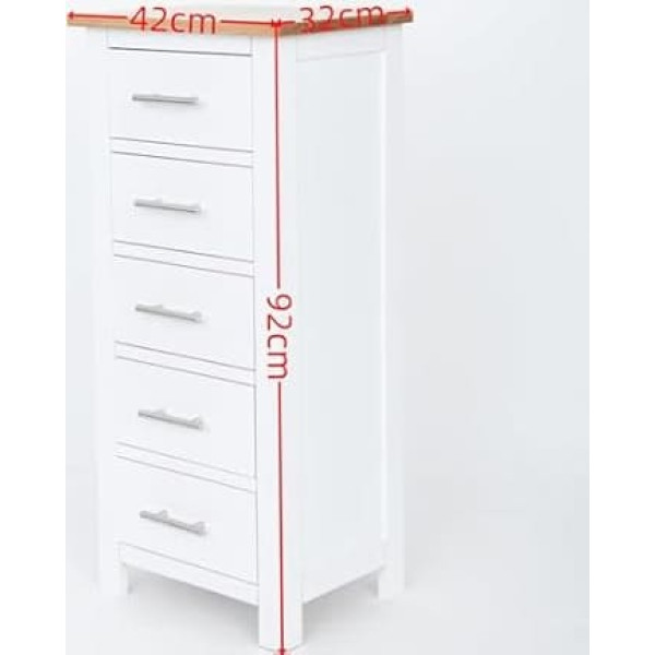 Kemtpase Baltā ozola 5 atvilktņu uzglabāšanas skapis Guļamistaba Dzīvojamā istaba Mājas biroja mēbeles
