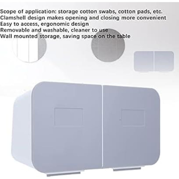 BAOFUYA Grima kastes organizators Sienas turētājs ar flip vāku turētājs kosmētikas kosmētikas kosmētikas kosmētikas turētājs ar kokvilnas pumpuriem vannas istabai (balti pelēks)