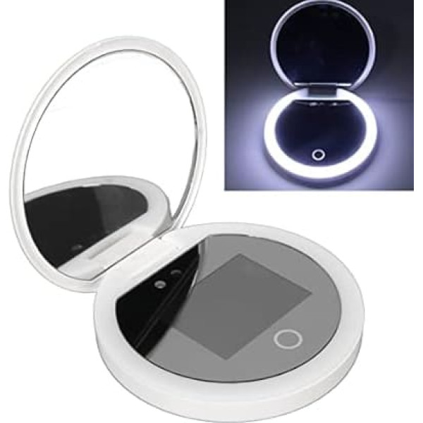 Ceļojumu kompaktais spogulis ar UV kameru, 2x palielinājums, pārnēsājams UV spogulis ar apgaismojumu, pārbaudot sejas saules aizsardzību, 3,5 collu salokāms ceļojumu spogulis