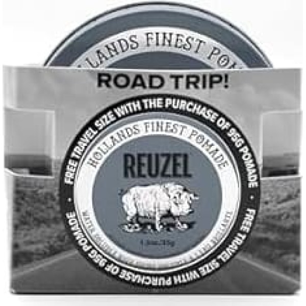 Reuzel 2025 Road Trip Pomade for Extreme Hold Spēcīga fiksācija ar zemu spīdumu Pomade vīriešiem 95g + Bezmaksas ceļojuma formāts 35g