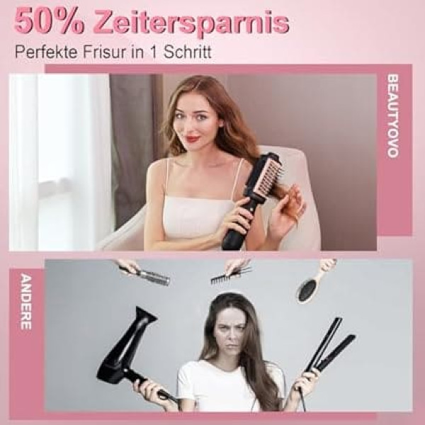 BEAUTYOVO 3-in-1 karstā gaisa suku apaļā matu žāvētājs ar iztaisnošanas suku un jonu - 3 režīmi (37-200°C), inteliģentas temperatūras regulēšanas matu žāvētāja suka žāvēšanai, izlīdzināšanai un apjomam