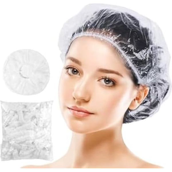 100 gabali dušas cepures vienreizējās dušas cepures Plastmasas dušas cepures vīriešiem un sievietēm Peldēšanas cepures Matu cepure Ūdensizturīga salona spa ceļošanai Home Hotel Shower