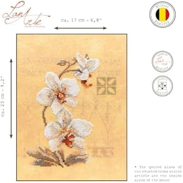 Lanarte skaitāmo krustdūrienu komplekts: Trīs orhidejas, vienmērīgs pinums, daudzkrāsains, 19,6 x 13,9 x 1,4 cm, 19,6 x 13,9 x 1,4 cm