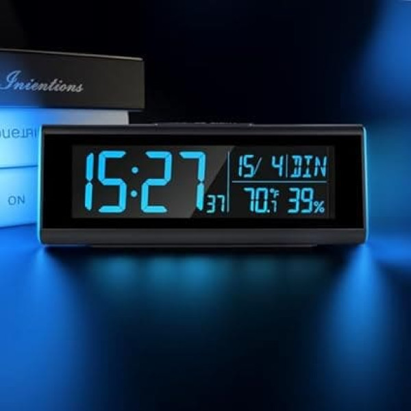 Seutgjie Digitālais galda pulkstenis, digitālais modinātājs ar RGB apgaismojumu, datumu, temperatūru, mitrumu, DST VA displeju, 7 valodām, diviem modinātāja laikiem, snaudas funkciju rakstāmgaldam, guļamistabai, birojam, moderns