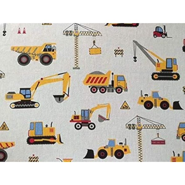 Būvlaukuma audumi šūšanai, zēnu audumi bērniem, 100% kokvilna, viendabīgi: 1,5 m viendabīgs kokvilnas audums ar transportlīdzekļiem būvlaukumā - pašizgāzējs, pašizgāzējs, mikseris, celtnis, kravas automašīna