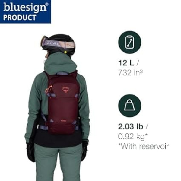 Osprey Glade Moody Burgundy 12L slēpju un snovborda mugursoma ar hidraulisko ūdens rezervuāru