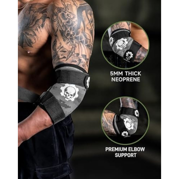 MANUEKLEAR 5 mm neoprēna svarcelšanas elkoņu aproces vīriešiem (1 pāris), elkoņu aproces Svarcelšana vīriešiem ar 2 regulējamām kompresijas siksnām sola un spēka celšanai un svarcelšanai