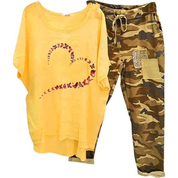 Briskorry Divdaļīgs sieviešu vasaras garš, augšējais krekls un bikses, bikšu kostīms, ikdienas brīvs atpūtas apģērbs, īsām piedurknēm, ekipāžas kakla treniņtērps, komforts, gaisīgs, streatwear, elegants, vienkārša joga