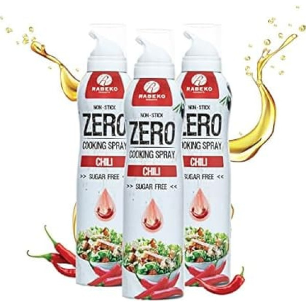 Rabeko Zero kulinārijas aerosols ar zemu kaloriju daudzumu | Čili | 800 porcijas, 2 kcal uz aerosolu | Panējuma aerosols cepšanai, grilēšanai un cepšanai | Bez piedevām, bez cukura | Bez glutēna un laktozes 3 x 200 ml