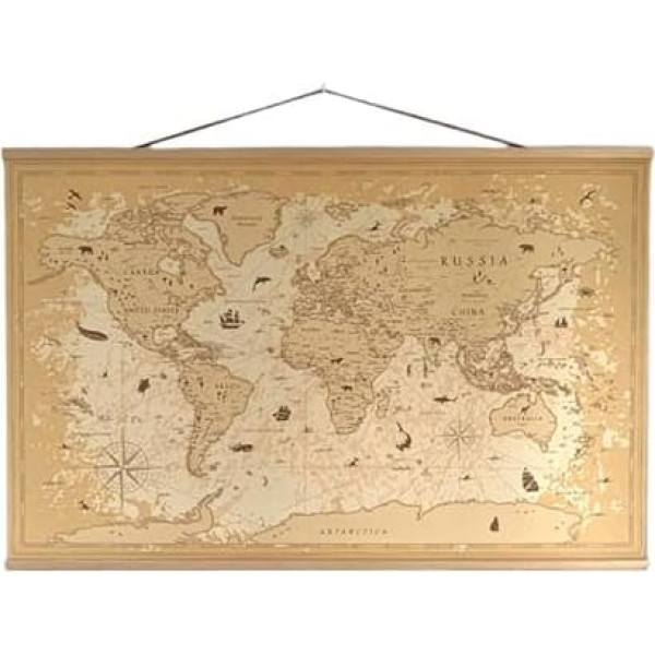 PRINTEALO Wandkarte, Weltkarte in Brauntönen, Druck auf Stoff, 370 g/m², mit Textur/Leinwand, Größe 97 x 65,4 cm, riesige Wandkarte mit englischem Text