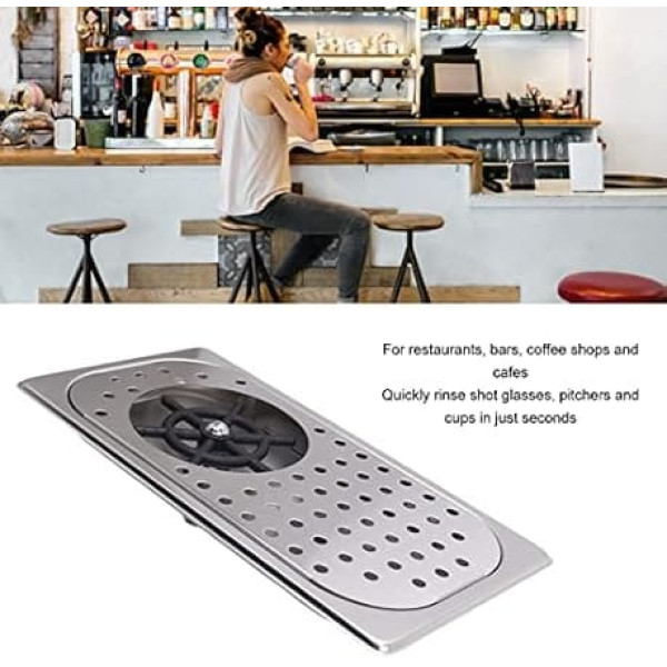 YUYTE Bāra izlietne ar stikla skalošanas ierīci, nerūsējošā tērauda krūžu skalošanas ierīce, krūžu skalošanas ierīce, stikla tīrīšanas skalošanas ierīce, augstspiediena skalošanas ierīce ar notekcauruļu un pilienu paplāti, šļūt