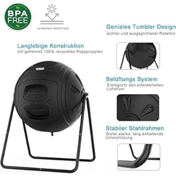 SQUEEZE master daudzfunkcionāls 130 litru tilpuma dārza un virtuves atkritumu komposta konteiners ar ērti lietojamu iztukšošanas aizbāzni šķidruma savākšanai