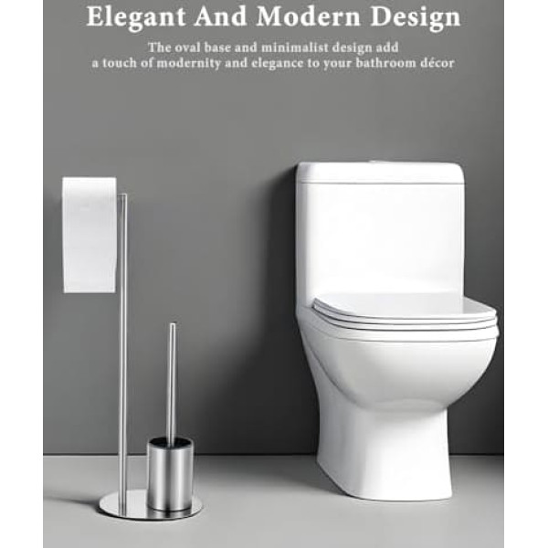 aichilra Tualetes turētājs, nerūsējošā tērauda tualetes papīra turētājs, stāv ar tualetes birsti, bez urbšanas, tualetes papīra turētājs ar tualetes birsti, tualetes ruļļu turētājs jebkurai vannas istabai