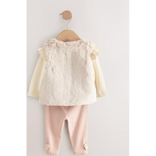 NEXT Bērnu meiteņu bērnu kažokādas veste, tops un legingi trīsdaļīgā rozā/krēma krāsā 56-62