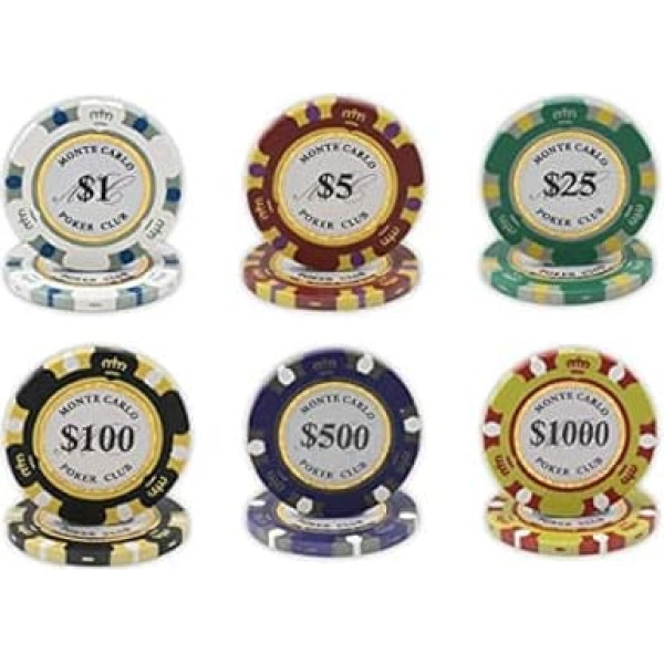 DA VINCI Monte Carlo pokera kluba 500 14 g trīskrāsu žetonu komplekts ar alumīnija futrālīti, kartēm, 2 šķeltām kartēm, dīlera un "aklo" žetonu pogām