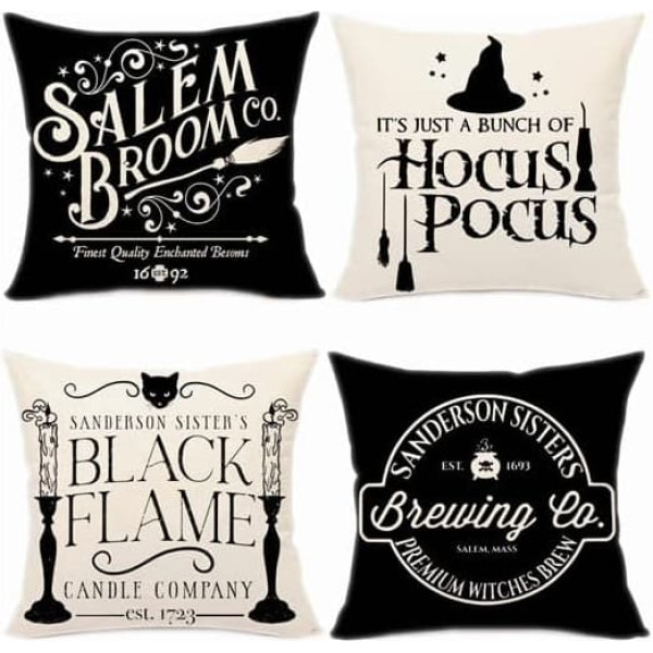 LIGICKY Spilvenu pārvalks 45 x 45 cm Halovīna dekori Lina dekoratīvais spilvena pārvalks Hocus Pocus Magic Broom Farmhouse Spilvenu pārvalki dīvānam Dīvāns Gulta Guļamistaba Dzīvojamā istaba Birojs (4 gab.)