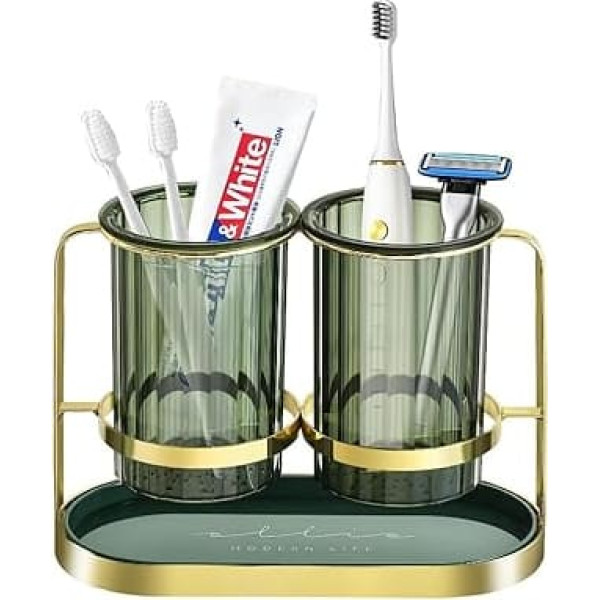 Zobu birstes turētājs vannas istabai, 2 zobu birstes galviņu turētājs, letes organizators, kosmētikas birstes turētājs, piederumu turētājs, piemērots virtuvei un vannas istabai (zaļš)