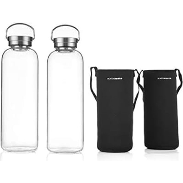 DE.KITCHEN&HIFUN stikla ūdens pudele 1,8 l liela borsilikāta stikla 2 l sulas stikla ūdens pudele ar tērauda vāciņa filtru