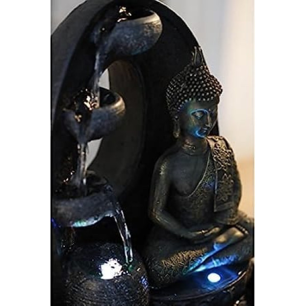 Zen Light iekštelpu Buddha Harmony ūdens strūklaka ar 2 krāsainiem LED apgaismojumu kluss sūknis, melns 26 x 16 x 40 cm